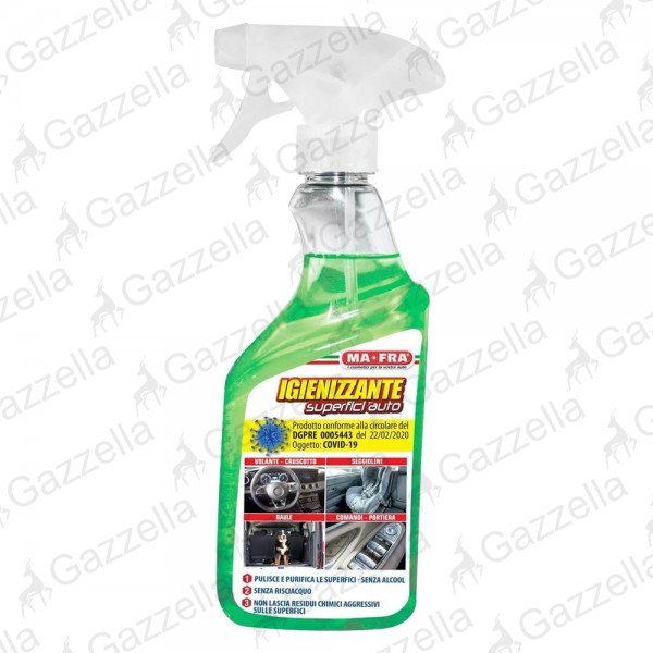 Indicato per la pulizia di tutte le superfici interne del veicolo. Rimuove sporco, cattivi odori e igienizza a fondo senza lasciare residui o aloni. Delicato su plastiche, tessuti, sedili, volante e tappetini. Non richiede risciacquo e lascia una gradevole fragranza di pulito. Si consiglia l’uso con panno in microfibra.