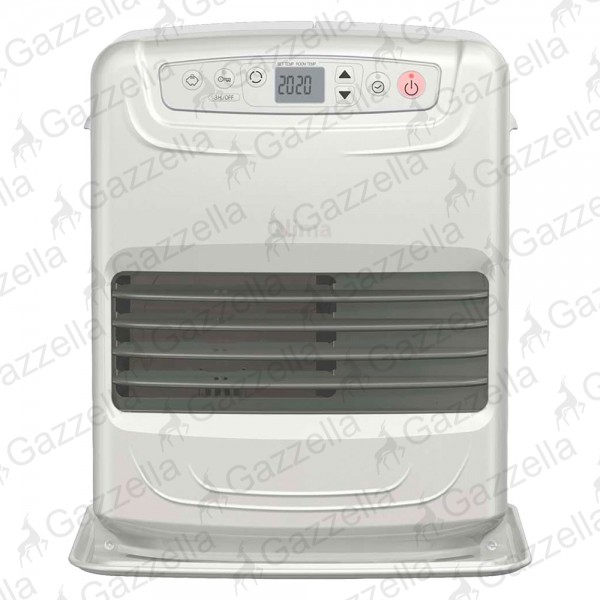 Elettronica. Con sistema anti-ribaltamento, prevenzione gelo, programmatore 24 h, modalita' save (blocco della temperatura impostata per maggiore risparmio energetico), tappo a presa pulita, autonomia prolungata, funzione fuzzy logic (timer che permette l'autocontrollo della temperatura). Tasto sicurezza bimbi. Ideale per ambienti fino a 120 mc. Consumo combustibile 0,323 lt/h, autonomia 44 ore max, capacita' serbatoio (estraibile) lt 5. Display LCD. Con pompa manuale per approvvigionamento di combustibile. Dimensioni: 371x299x429 mm.